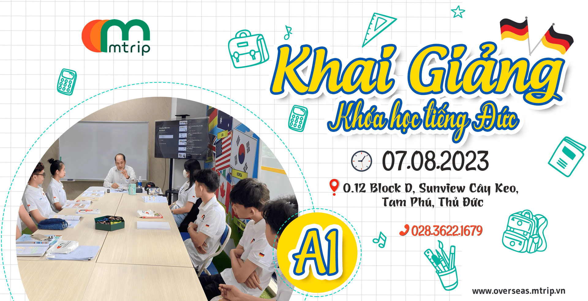 Lớp trung A1 sắp khai giảng bao gồm luyện thi trình độ A1 (Goethe A1) và kỳ thi cuối khóa.