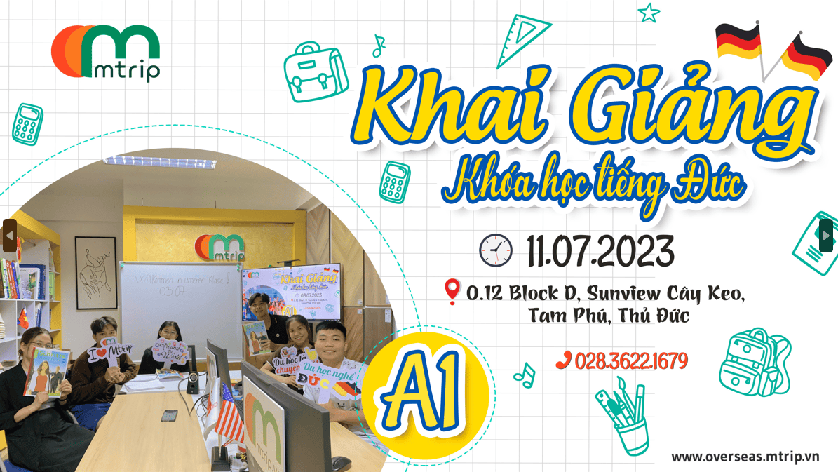 Lớp trung A1 sắp khai giảng bao gồm luyện thi trình độ A1 (Goethe A1) và kỳ thi cuối khóa