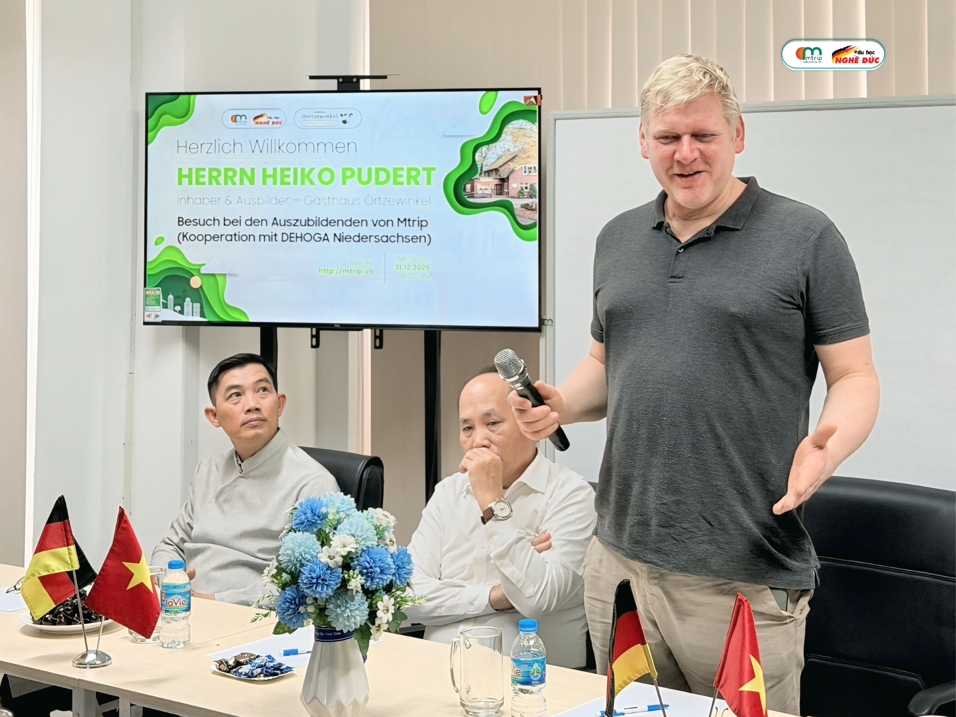 Ngày cuối cùng của năm 2025 đã khép lại bằng một dấu ấn đặc biệt khi Mtrip vinh dự đón tiếp Herrn Heiko Pudert trong một buổi gặp gỡ thân tình, ấm áp và đầy ý nghĩa. Chuyến thăm không chỉ mang giá trị kết nối, mà còn mở ra nhiều cảm xúc tích cực cho các bạn học viên đang trên hành trình chuẩn bị du học nghề Đức.