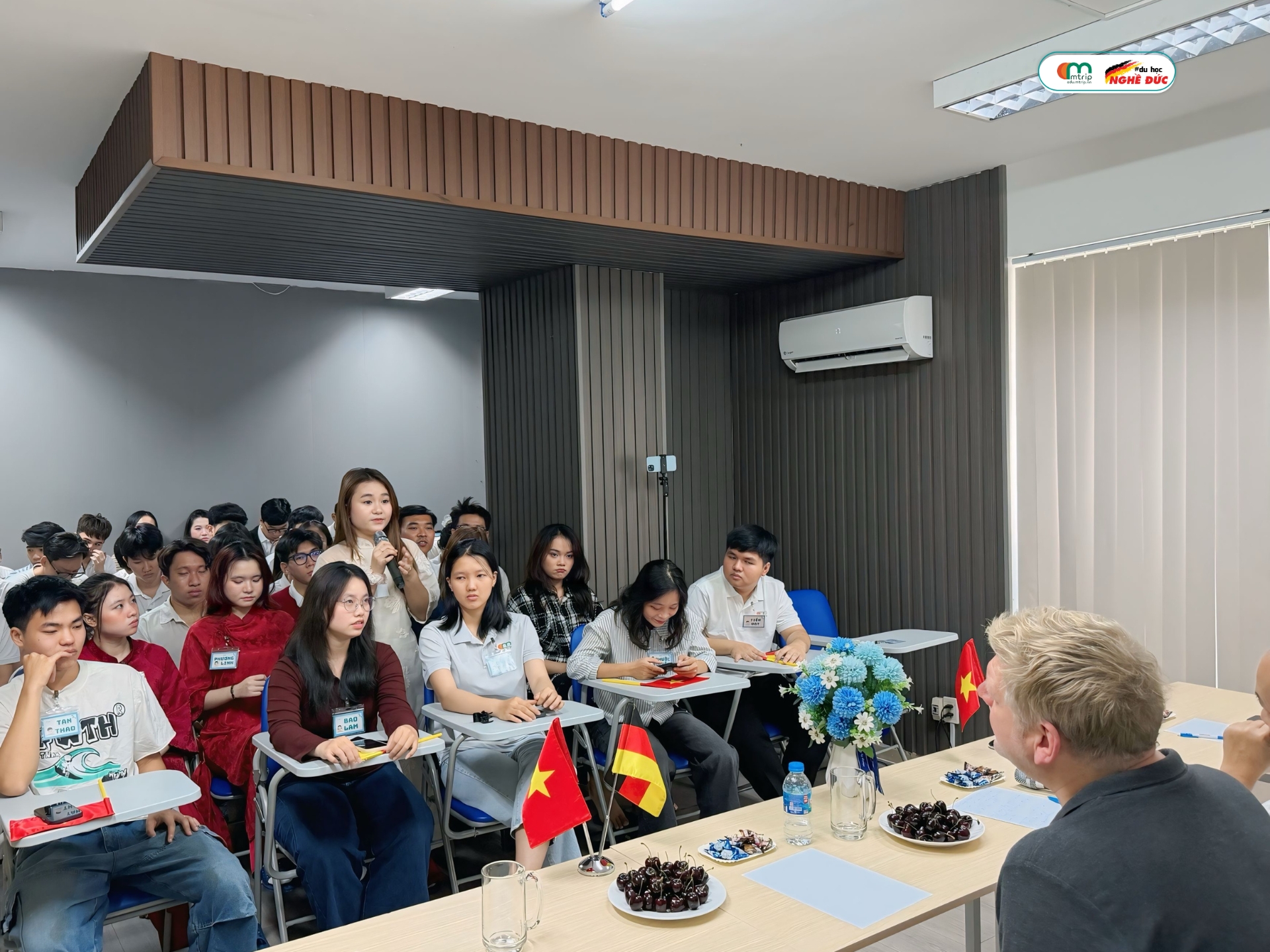 Trong không khí gần gũi và cởi mở, các học viên Mtrip đã có cơ hội trực tiếp giao lưu, chia sẻ những băn khoăn, trăn trở xoay quanh việc học tiếng Đức, định hướng nghề nghiệp cũng như cuộc sống tại Đức trong tương lai. Những câu hỏi được đặt ra một cách thẳng thắn, chân thành và nhận lại sự lắng nghe, giải đáp tận tình từ Herrn Heiko Pudert. Điều này đã giúp nhiều bạn học viên thêm vững tin, giảm bớt lo lắng và có cái nhìn rõ ràng hơn về chặng đường phía trước.