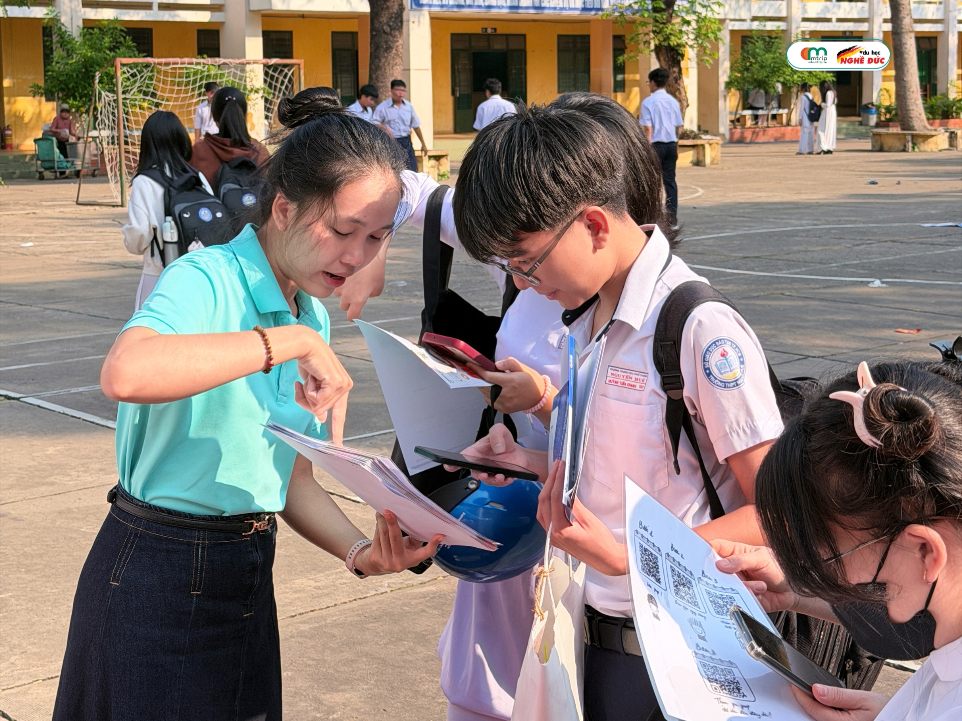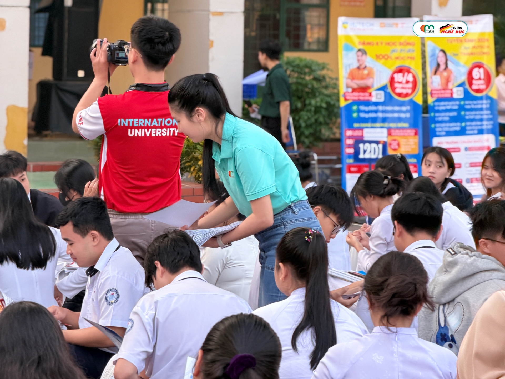 Không khí của Ngày hội Tư vấn Hướng nghiệp – Tuyển sinh trường THPT Nguyễn Huệ diễn ra sôi nổi, cởi mở, tạo điều kiện để học sinh chủ động tìm hiểu và so sánh các hướng đi cho tương lai.