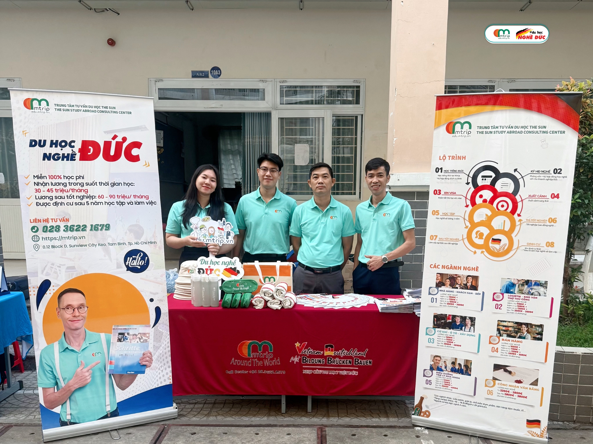 Trong khuôn khổ ngày hội, Mtrip tập trung chia sẻ những nội dung cụ thể xoay quanh việc học tiếng Đức và lộ trình du học nghề Đức. Thay vì giới thiệu chung chung, các thông tin được trình bày theo hướng thực tế, giúp học sinh hiểu rõ cần bắt đầu từ đâu, thời gian chuẩn bị ra sao và những yêu cầu cần thiết để tham gia chương trình du học nghề tại Đức. Đây cũng là những vấn đề được nhiều bạn học sinh quan tâm khi đứng trước ngưỡng cửa lựa chọn hướng đi tương lai.