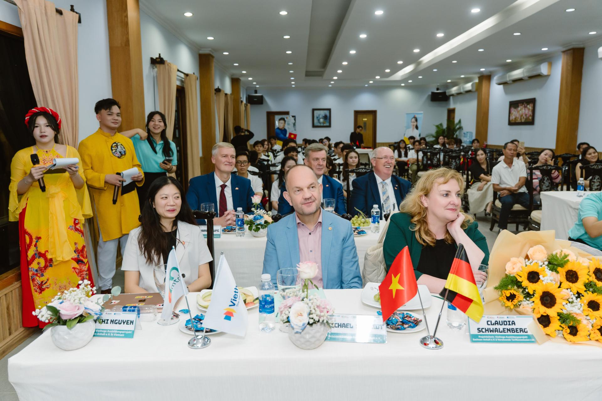Sự hiện diện của đoàn đã mang đến cho chương trình không khí ấm áp, chuyên nghiệp và tràn đầy ý nghĩa. Các bạn học viên cùng quý phụ huynh đã có cơ hội tìm hiểu sâu hơn về hệ thống đào tạo nghề kép – mô hình đặc trưng và nổi tiếng của Đức, cũng như nhận được những chia sẻ thực tế từ các chuyên gia của DEHOGA Sachsen-Anhalt về công việc, mức lương, lộ trình phát triển và những giá trị mà ngành dịch vụ – khách sạn tại Đức mang lại.